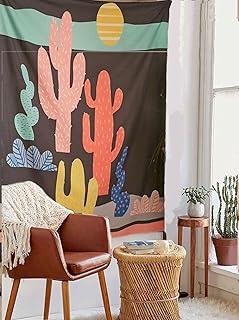 ウチワサボテン柄 ウォールタペストリー 装飾 ヘッドボード ホームインテリア 60×80インチ、ツインサイズ