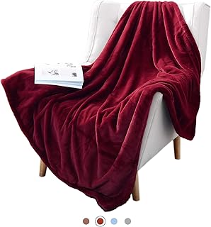 FLUFFY & COZY 高級ラビットフェイクファーリバーシブルシェルパ オーバーサイズスローブランケット-60×80インチ(150cm x 200cm)、赤ワイン ツインサイズ