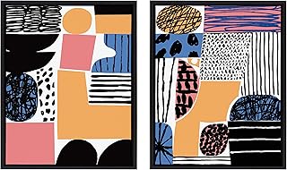 Kate and Laurel Sylvie Abstract Collage 3 and Abstract Collage 4 Framed Canvas Wall Art by Marcello Velho, 18x24 Black, Modern Abstract Home Decor 141[並行輸入]