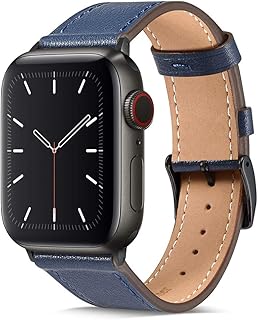 MNBVCXZ コンパチブル apple watch バンド45mm 44mm 42mmに対応,apple watch バンド 本革 レザー,交換用アップルウォッチバンド コンパチブル ベルト互換性のある Apple Watch SE, iWatch Series 7/6/5/4/3/2/1(42mm/44mm/45mm, ダークブルー/ブラックアダプター)