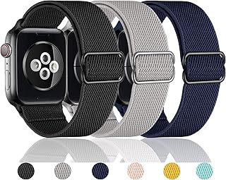 コンパチブル Apple Watch バンド 41mm 38mm 40mm 45mm 42mm 44mm ナイロン交換バンド 適応Apple Watch Series 7 SE 6 5 4 3 2 1伸縮バンド長さ調節可能 (42mm/44mm/45mm, ブラック+グレー+ブルー)