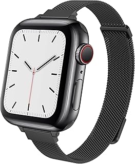 RON-D コンパチブル Apple Watch バンド細い 41mm 40mm 38mm 45mm 44mm 42mm, 女性用 通気性アップ 薄い ミラネーゼループベルト コンパチブル アップルウォッチ バンド 長さ調整可能 コンパチブル iWatch バンド シリーズ7/6/SE/5/4/3/2/1 (42mm/44mm/45mm, ブラック)