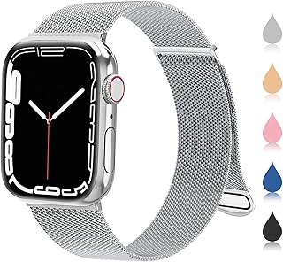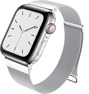 MRAIN-H コンパチブル Apple Watch バンド 45mm 44mm 42mm 41mm 40mm 38mm 男性用 女性用、iWatch バンド シリーズ7/6/SE/5/4/3/2/1対応 長さ調節 強力な磁気クラスプ付き メッシュステンレス鋼 ベルト アップルウォッチ用 バンド(42mm/44mm/45mm,シルバー)