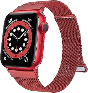 MRAIN-H コンパチブル Apple Watch バンド 45mm 44mm 42mm 41mm 40mm 38mm 男性用 女性用、iWatch バンド シリーズ7/6/SE/5/4/3/2/1対応 長さ調節 強力な磁気クラスプ付き メッシュステンレス鋼 ベルト アップルウォッチ用 バンド(42mm/44mm/45mm,赤)
