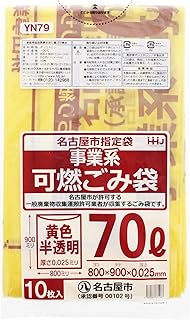 ハウスホールドジャパン ゴミ袋 ゴミ箱用アクセサリ 黄色 半透明 70L 名古屋市指定袋(事業系 可燃) YN76 10枚入