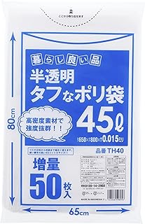 ハウスホールドジャパン タフなポリ袋 半透明 45L 暮らし良い品 増量 0.015ミリ厚 (ケース販売) TH40 50枚入,25個セット