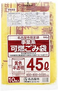 ハウスホールドジャパン ゴミ袋 ゴミ箱用アクセサリ 黄色 半透明 45L 名古屋市指定袋(事業系 可燃) YN46 10枚入