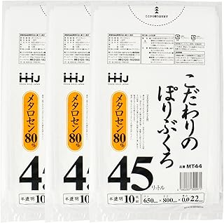 ハウスホールドジャパン こだわりのぽりぶくろ 半透明 45L 0.022ミリ厚 薄くてもよく伸びるメタロセン高配合タイプ MT44 10枚入,3個セット