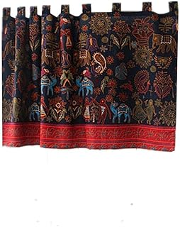カラフル コットンキッチンカーテン バスルーム用 小窓 カフェカーテン 刺繍フローラル レトロなエスニックスタイル タブトップ ドレープドアパネル 窓カーテン バランス階層 リビング用 1枚組 幅140*丈60cm