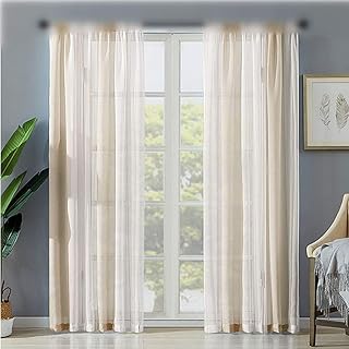 jinchan シアーカーテン ロッドポケット付き 窓カーテン パネル ドレープ しっかりとした質感 寝室用 リビング用 2枚セット 52'W x 84'L JCUSRP2-HQG-5284VO2