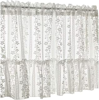 SIMPVALE カフェカーテン 可愛い お 花の形の中空 レースカーテン キッチンバルコニー用 (幅120cm x 丈60cm, ホワイト)