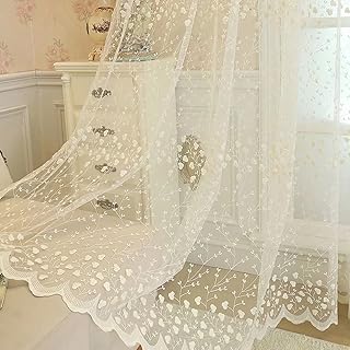 パール・ホワイト レースカーテン ボイルカーテンパネル60cm丈 ピンチプリーツトップ ヘビーチュールドレープ ジャカード 刺繍 ヨーロッパの花のデザイン ガラス扉用 フレキシブル 縦編み生地 窓カーテン リビング用 1枚 幅90 cm 丈60cm