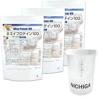 <シェイカー セット>ホエイプロテイン100 1kg×3袋 合成甘味料・合成香料・無添加 牛成長ホルモン不使用 [02] NICHIGA(ニチガ)