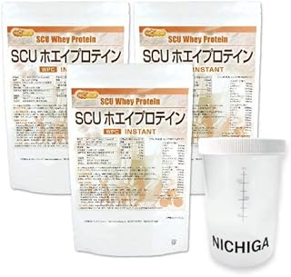 <シェイカー セット> SCU ホエイプロテイン 【instant】1kg×3袋 WPC 造粒品 牛成長ホルモン不使用 [02] NICHIGA(ニチガ)