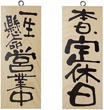 手書き風筆文字 木製サイン看板 「只今、元気に商い中/本日、定休日」 両面(W10cm×H25cm/木目)
