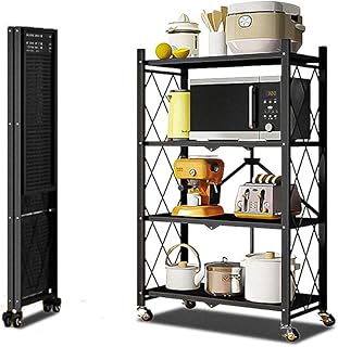 DEWEL レンジ台 キッチン収納ラックワゴン 折りたたみ棚 シェルフ棚 キャスター付き 食器棚 新設計 用途広い ブラック 71x34x126CM(4段)